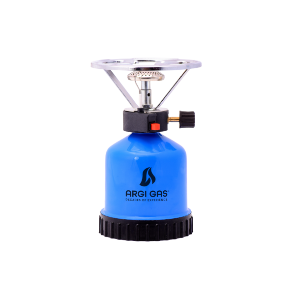 Το καμινέτο Αrgi Gas έχει ειδικά σχεδιασμένο πάτο για εύκολη και γρήγορη αλλαγή φιαλιδίου, και μηχανισμό αυτόματου ανάμματος ΠΙΕΖΟ.