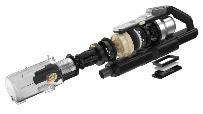 Τα εξαρτήματα μπορείς να τα χρησιμοποιήσεις είτε με τη σκούπα σε λειτουργία stick είτε σε χειρός.