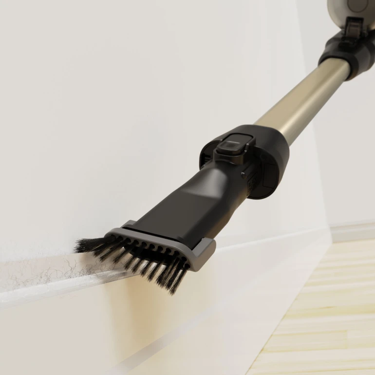 Με το αποσπώμενο κοντάρι και τα πολλά εξαρτήματα, μπορείς εύκολα να προσαρμόσεις τη σκούπα για κάθε καθαρισμό στο σπίτι σου. Μετατρέπεται γρήγορα σε χειρός, ιδανική για πάγκους και σκάλες!
