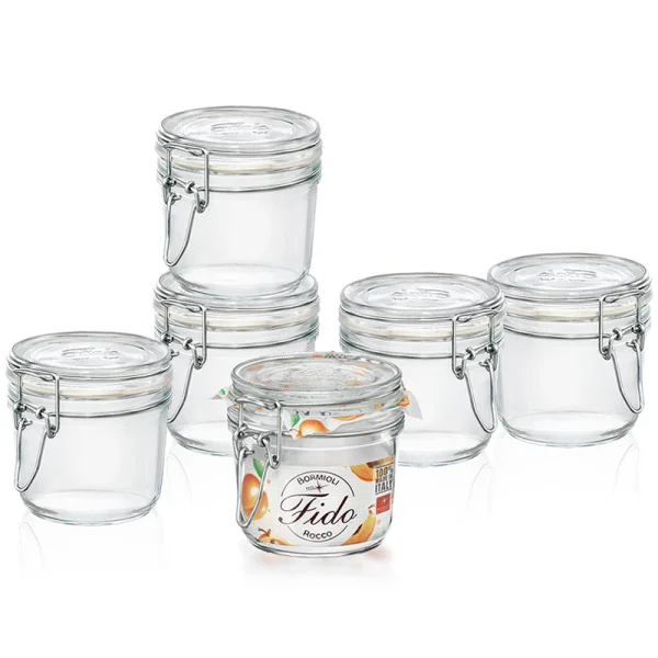 Γυάλινο Βάζο της σειράς Bormioli Rocco Fido από υψηλής ποιότητας γυάλι με αεροστεγές καπάκι με έλασμα για στεγανοποίηση του δοχείου από αέρα και υγρασίας.