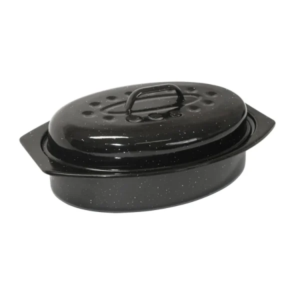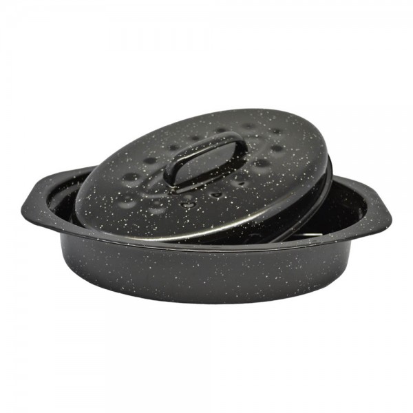 Γάστρα οβάλ με εμαγιέ επίστρωση και καπάκι. ιδανικό για αργό ψήσιμο σε σταθερή θερμοκρασία,προσφέρει ομοιόμορφη θέρμανση και διατηρεί τη θερμοκρασία