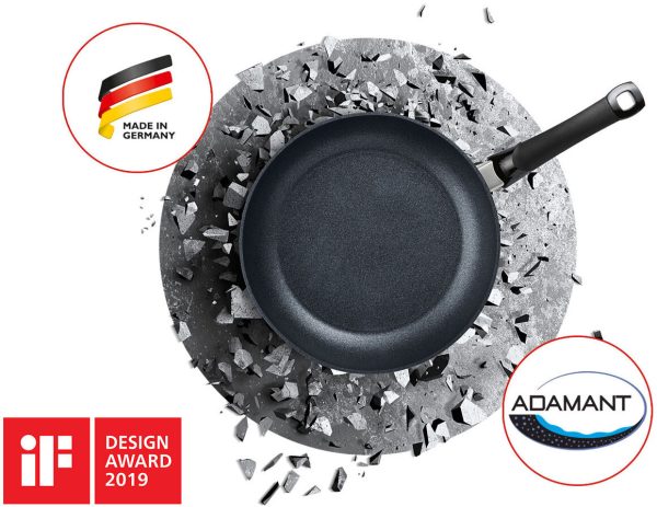 Νέα σειρά τηγανιών που διαθέτει επιφάνεια ανθεκτική στις γρατζουνιές χάρη στη νέα, εξαιρετικά ανθεκτική επίστρωση Adamant! Προσφέρει εξαιρετικές αντικολλητικές ιδιότητες καθώς το καθιστά εξαιρετικά στιβαρό και ανθεκτικό σαν πέτρα! Η νέα σειρά Adamant επιτρέπει επίσης τη χρήση μεταλλικών σκευών κουζίνας. Περνάει περισσότερη θερμότητα στα τρόφιμα τηγανίσματος από τα κανονικά επιχρισμένα.