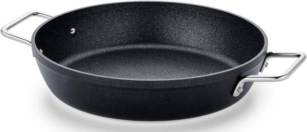 Το τηγάνι σερβιρίσματος Fissler με δύο πλαϊνές λαβές από γυαλισμένο ανοξείδωτο ατσάλι 18/10 που εξοικονομούν χώρο, εξαιρετικά ψηλό χείλος και μεγάλη επιφάνεια τηγανίσματος είναι ιδανικό για άνετο ανακάτεμα, γύρισμα και χρήση στο φούρνο χωρίς διαρροές. Σε αυτό, μπορείτε να σερβίρετε πιάτα απευθείας στο τραπέζι. Η επίστρωση του τηγανιού κάνει το ξέβγαλμα παιδικό παιχνίδι.
