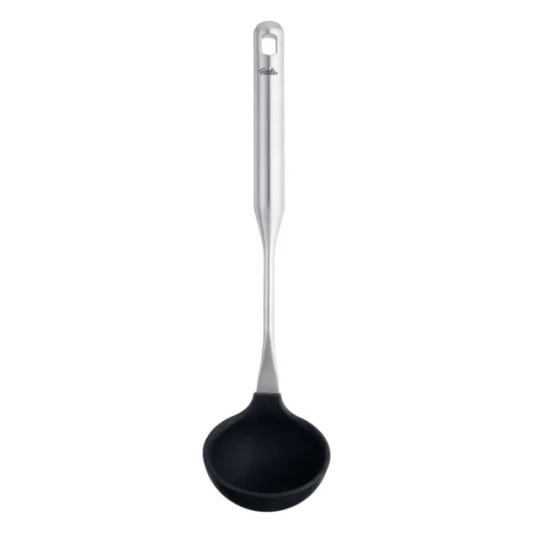 Η κουτάλα Fissler Essential® με σιλικόνη είναι ιδανική για να σερβίρετε γενναιόδωρες μερίδες σούπες, σάλτσες ή ποτά όπως παντς. Η εύκαμπτη κεφαλή σιλικόνης διασφαλίζει ότι ακόμη και η τελευταία σταγόνα αφαιρείται αβίαστα από τα μαγειρικά σκεύη – χωρίς να γρατσουνίζονται οι επικαλυμμένες επιφάνειες.