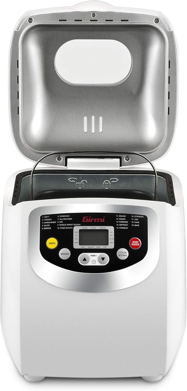 Με τον αρτοπαρασκευαστή Girmi MP20, η παρασκευή ψωμιού στο σπίτι δεν αποτελεί πλέον πρόβλημα. Χάρη στα 19 προγράμματά του μπορείτε να δημιουργήσετε πολλές συνταγές: ψωμί (κλασικό, γαλλικό, ολόκληρο..), ζύμη πίτσας, focaccia, κέικ και ζύμη μαγιάς, αλλά και γιαούρτι, μαρμελάδα και σούπα βρώμης.