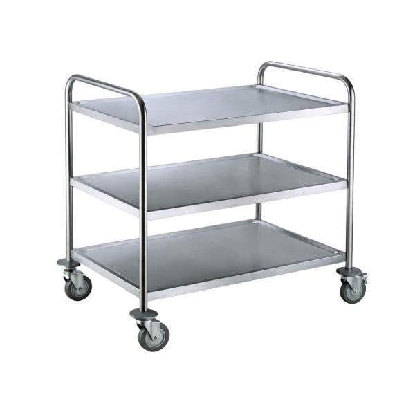 Πρακτικό και ανθεκτικό τρόλεϊ από ανοξείδωτο ατσάλι, ιδανικό για επαγγελματικές κουζίνες, εστιατόρια, ξενοδοχεία και χώρους εργασίας.