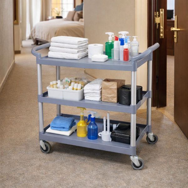 Πρακτικό και ανθεκτικό τρόλεϊ από στοιβαρό πλαστικό, ιδανικό για επαγγελματικές κουζίνες, εστιατόρια, ξενοδοχεία και χώρους εργασίας.