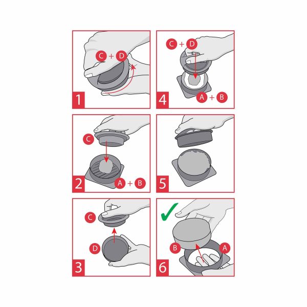 Η χρήση και η εφαρμογή του είναι πολύ απλή αφού αρκεί να εισάγουμε το παρασκεύασμα στο καλούπι, να το πιέσουμε και τέλος, θα αποκτήσουμε ένα απόλυτα περίτεχνο και στρογγυλό χάμπουργκερ.