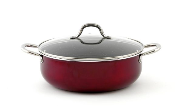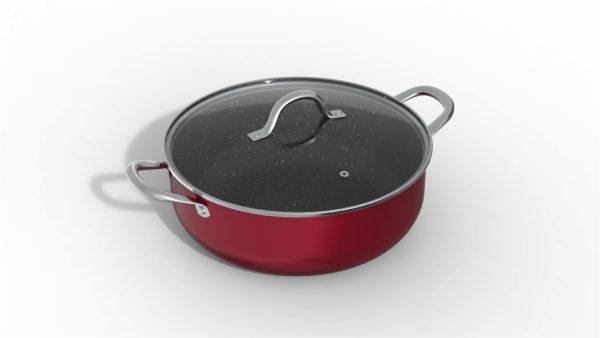 Είναι κατασκευασμένος από πρεσαριστό αλουμίνιο 3 χιλ. πάχος, πολύ βαθύς για όλες τις χρήσεις. Είναι κατάλληλος για όλες τις εστίες, συμπεριλαμβανομένης και της επαγωγικής, αλλά και για χρήση στο φούρνο. Χάρη στα ανοξείδωτα χέρια μπορεί να χρησιμοποιηθεί και στο φούρνο, λύνοντάς σας τα χέρια. Ξεκινάτε το μαγείρεμα στην εστία, θωρακίζοντας π.χ. το κρέας από τις δύο πλευρές και συνεχίζετε το μαγείρεμα στο φούρνο, όλα με ένα σκεύος! Οι επιστρώσεις γίνονται με την μέθοδο του ψεκασμού, κλείνοντας όλους τους πόρους, με αποτέλεσμα όλα τα σκεύη ακόμα και μετά από παρατεταμένη χρήση να δείχνουν και να συμπεριφέρονται σαν καινούργια, διατηρώντας τις αντικολλητικές τους ιδιότητες στο ακέραιο, για εύκολο καθάρισμα. Η αντικολλητική επιφάνεια είναι ενισχυμένη με ψήγματα γρανίτη και φυσικά μέταλλα που την κάνει ακόμα πιο ανθεκτική σαν πέτρα.