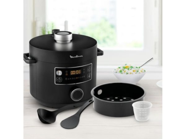 Απολαύστε όλα τα αγαπημένα σας γεύματα σε χρόνο μηδέν! Το Moulinex TURBO CUISINE είναι ο σύγχρονος πολυμάγειρας για νόστιμα αποτελέσματα έως και 3 φορές πιο γρήγορα*και χωρίς παρακολούθηση της διαδικασίας μαγειρέματος, με ειδικό σχεδιασμό για γεύματα που βγαίνουν τέλεια κάθε φορά. Η ηλεκτρική χύτρα ταχύτητας της MOULINEX εξοικονομεί έως και 80% ενέργεια σε σύγκριση με το συμβατικό μαγείρεμα**. Το αποκλειστικό σφαιρικό μπολ της Moulinex προσφέρει μεγαλύτερη επιφάνεια θέρμανσης με βέλτιστη διάχυση και κυκλοφορία θερμότητας. Εξασφαλίζει τρυφερά, ζουμερά αποτελέσματα κάθε μέρα, για όλη την απόλαυση της μαγειρικής στο σπίτι χωρίς καμία ταλαιπωρία. Ανακαλύψτε ευχάριστα οικογενειακά γεύματα από το ορεκτικό έως το επιδόρπιο-με μια συσκευή που χρησιμεύει ως χύτρα ταχύτητας, ατμομάγειρας, παρασκευαστής σούπας και άλλα-όλα στη διάθεσή σας και χωρίς κόπο με ένα διαισθητικό και μοναδικό ρυθμιστή ελέγχου. Επιλέξτε από 10 προγράμματα αυτόματου μαγειρέματος και χειροκίνητο έλεγχο και ζήστε τη διαφορά με την εύχρηστη ηλεκτρική χύτρα ταχύτητας που έχει σχεδιαστεί για να καλύψει όλες τις μαγειρικές σας ανάγκες-για μια εξαιρετική συσκευή που αντικαθιστά τουλάχιστον επτά συσκευές μαγειρέματος.