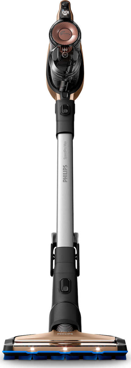 Η SpeedPro Max είναι ευέλικτη και εύκολη στους ελιγμούς. Το δοχείο συλλογής σκόνης βρίσκεται στο επάνω μέρος, πετυχαίνοντας μικρότερη γωνία, ενώ φτάνει ακόμα και σε εντελώς επίπεδη θέση στο δάπεδο, για να φτάνετε κάτω από χαμηλά έπιπλα.