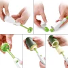 Για να αδειάζετε τα λαχανικά χωρίς κόπο, υπάρχει ένα εργαλείο που είναι πολύ εύκολο στη χρήση και κατάλληλο για λαχανικά διαφορετικών μεγεθών: έχει μια λαβή στην οποία μπορεί να εφαρμοστεί μία από τις 3 λεπίδες που παρέχονται, διαφορετικών μεγεθών.